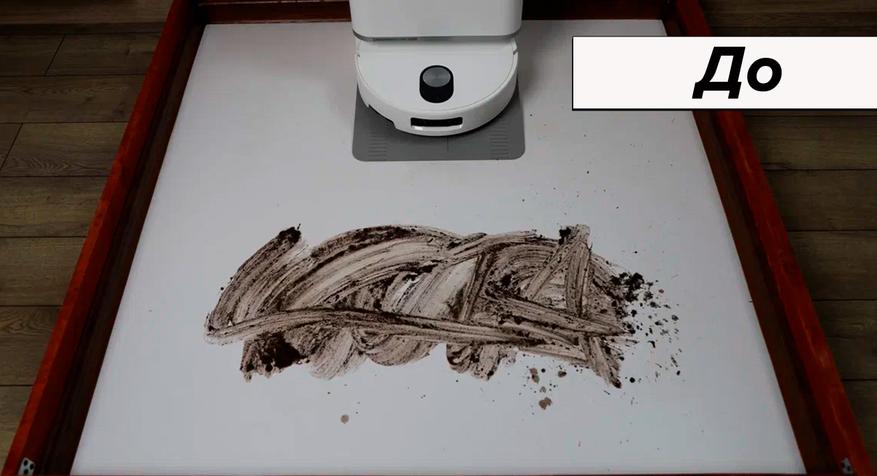 Компактный раструб с плотным прилеганием к полу продемонстрировал отличный результат на щелевом стенде. 2-мм щель зачистил всплошную, а более глубокие (вплоть до 10 мм включительно) — полосами. Xiaomi Mijia M40s — один из самых мощных роботов из тех, что её выпускают!