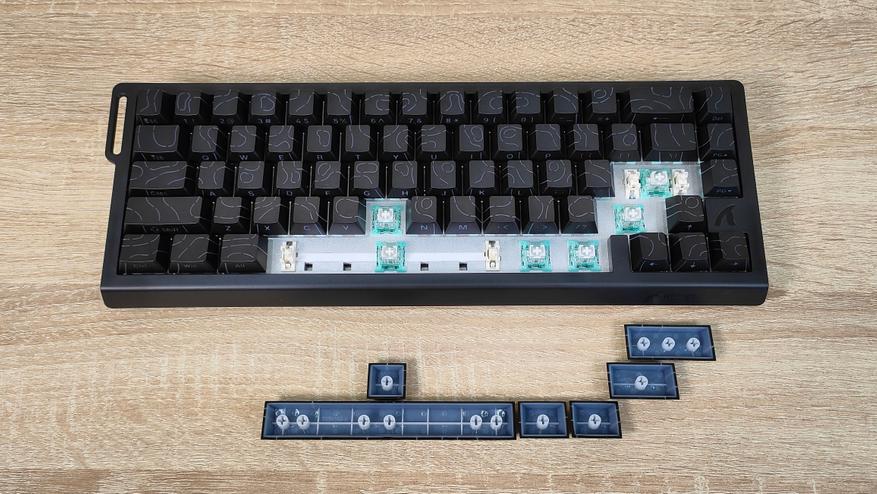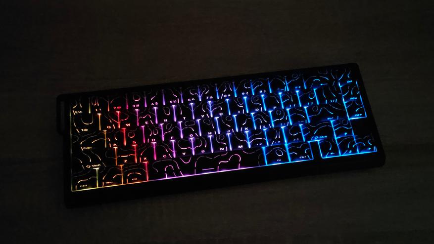 Но рисунок на колпачках это не более, чем декорация, поэтому, это просто клавиатура, а профиль у неё OEM. Самый распространённый и популярный среди многих производителей клавиатур, а также пользователей. Формат клавиатуры 60%, широкие шифты, одноэтажный Enter, ANSI. Клавиатура очень компактная и непременно найдёт своего пользователя, который ищет именно компактный вариант, а ещё больше пользователей оттолкнёт, так как многим не нравится даже TKL вариант, где нет только цифрового блока, а тут нет и много других клавиш. Но это всё вкусовщина, пользователи найдутся всех вариантов клавиатур, вплоть до 40%.