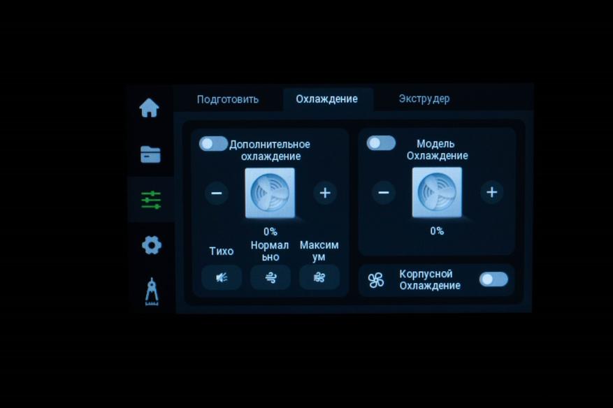 Примеры экранных меню, позволяющих управлять печатью как в автономном режиме с самого принтера, так и обеспечить подключение через WiFi сеть. Базовые характеристики: область печати 256 х 256 х 256 миллиметров, работа с прутком 1.75 миллиметров, в том числе и с карбон наполненными пластиками. а также с нейлоном: температура подогрева стола заявлена чуть более 100 градусов, температура нагрева сопла — до 300 градусов.