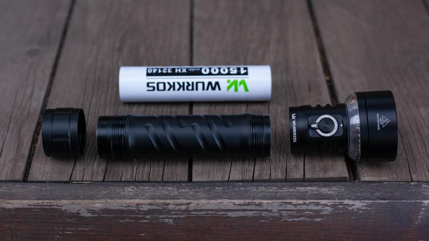 Начать обзор Wurkkos TS27 следует с того первого, что бросается в глаза, когда достаёшь фонарик из коробки — размера. Причем речь тут идёт не о размере фонарика, сам Wurkkos пусть и один из самых больших фонариков, которые вышли в серию за последние год-два, но он ничуть не больше любого фонарика с питанием от пары 26650 или 21700. А вот что тут удивляет, это его аккумулятор — одна из функциональных фишек этой модели.