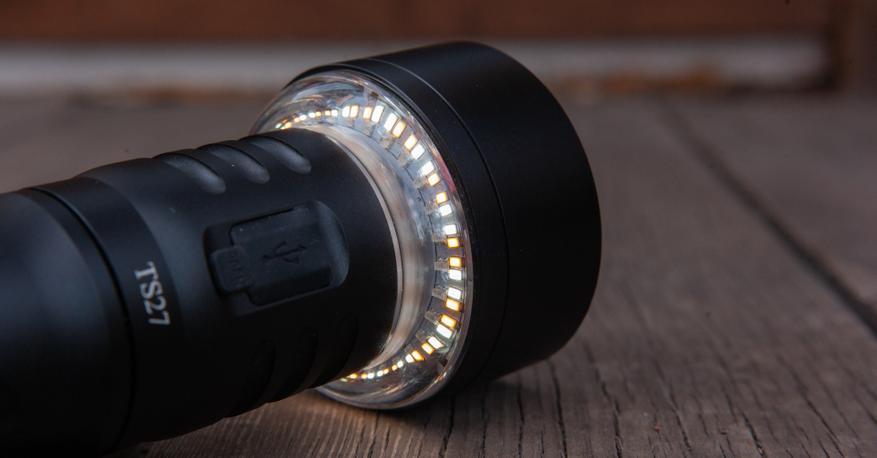 После некоторого количества обычных, в целом, фонариков Wurkkos выпустили несколько экспериментальных моделей. TS27 выбивается из общего ряда компоновкой с дополнительным светодиодным кольцом кемпингового света и аккумулятором, колоссальным во всём: ёмкости, сроке службы и размере.