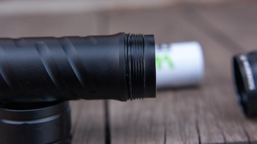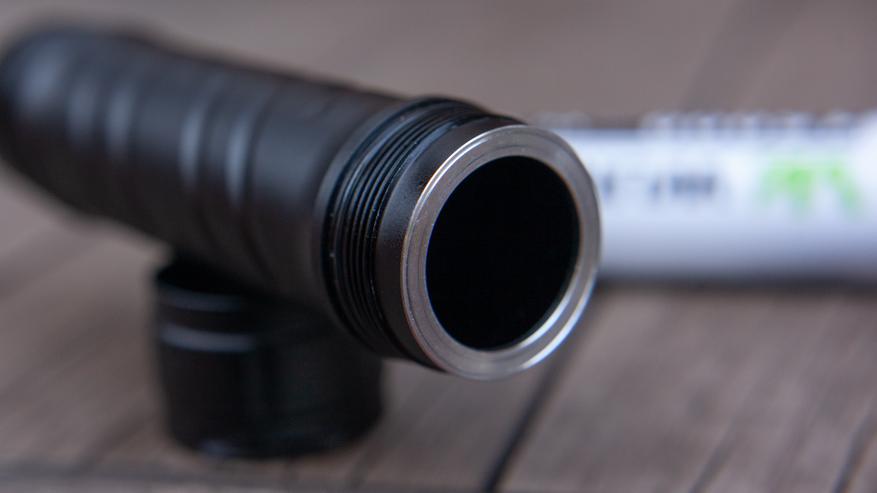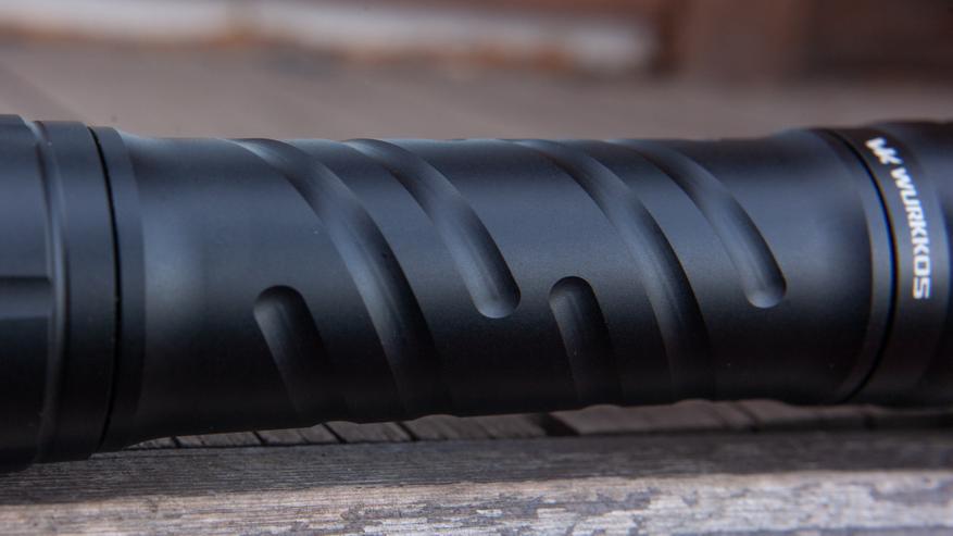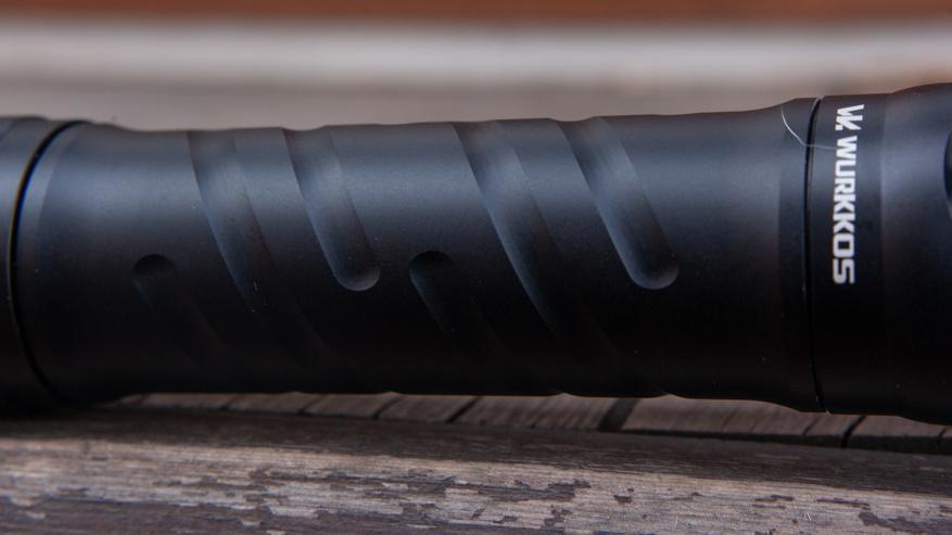 Ребра охлаждение на голове присутствуют. Они достаточно глубокие сами по себе, но не особенно впечатляют относительно размеров фонарика. Впрочем, при таких своих габаритах и весе фонарик должен поглощать и отводить от головы изрядную часть тепла просто за счёт обилия металла в корпусе. А значит и увеличивать время работы на старших яркостях. Обзор Wurkkos TS7 покажет и это тоже, но к графикам работы мы перейдем ниже.