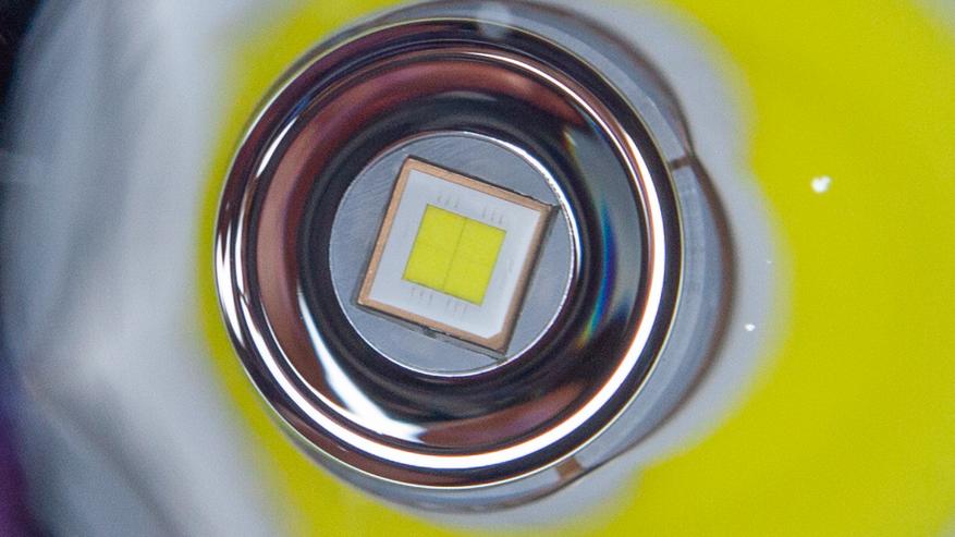 В качестве основного света используется Luminus SFT70.2. Такое ощущение, что Sofirn и Wurkkos ставят его в каждую вторую модель… Оно и понятно — слишком соблазнительный результат. Отличная яркость, которую можно указать на коробке и промо-картинках. Широкий, яркий и при этом дедомленный (т.е. без рассеивающего свет силиконового купола) светодиод, который при наличии нужной оптики даёт тот столь желанный многими поисковый свет типа «хочу чтобы светил и ярко, и далеко, и широко».