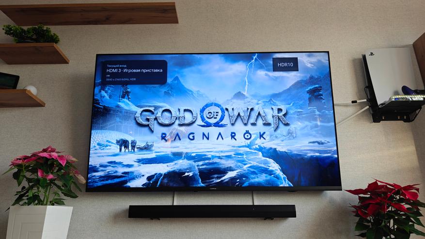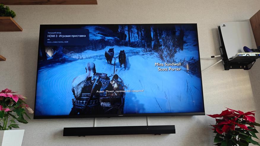 Игр, которые «умеют» в более плавную картинку на сони не так много. Скачиваем God of War, выставляем параметры изображения основанные на высокой частоте. Картинка меняется, разрешение становится 1920*1080 и частота 120 Гц с поддержкой технологии HDR, о чем сообщает информатор телевизора по кнопке info на пульте.