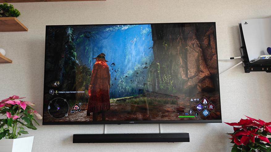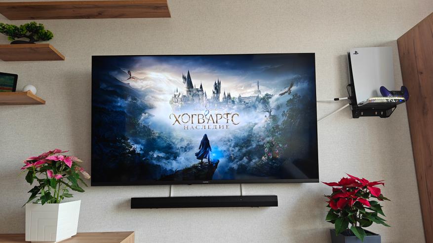 В очень мрачном королевстве… В общем, в мрачной вселенной Хогвартса тоже можно играть без прищуривания и рассматривать силуэты замка на горизонте даже ночью. Заклинания смотрятся ярко, а картинка смотрится очень атмосферно. QLED технология тут отдувается по полной, пытаясь передать тысячи деталей отрисовки рун на стенах.
