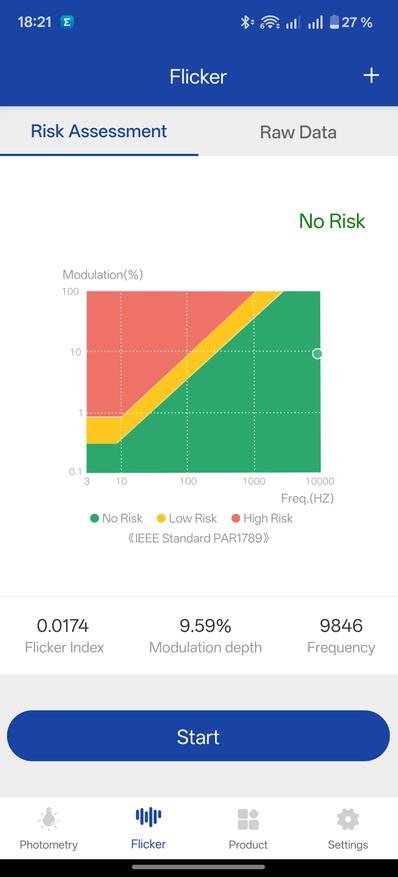 Заявленная яркость 330 Кд/м2, чего хватает для просмотра телевизора даже днем. Тестер от Opple косвенно подтверждает заявленные параметры. Доказывает корректный баланс белого, а также сообщает, что телевизор можно смотреть безопасно долго, ведь зловредных мерцаний тут нет.
