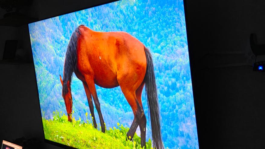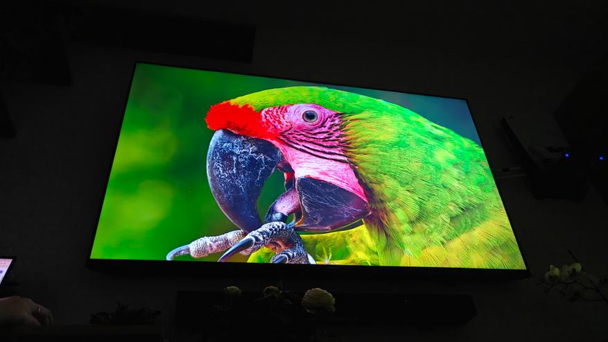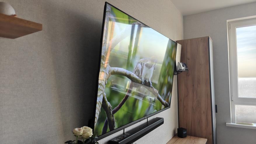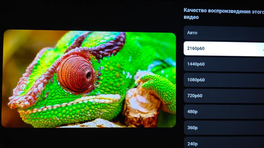Встроенное приложение YouTube дает возможность воспроизводить контент с качеством до 2160p60. Цвета насыщенные, детальность на отличном уровне. Картинка всегда яркая и насыщенная. Смотреть контент 4К приятно не только в темноте, но и днем. Цвета и яркость совсем не искажаются при просмотре с любого угла, что удобно при просмотре со стороны.