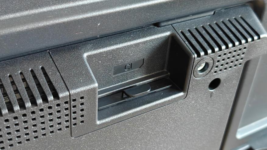 Верхний разъем под заглушкой — это возможность установки PCM-CI карт. Справа — разъем питания. Хорошо, что кабель съемный.