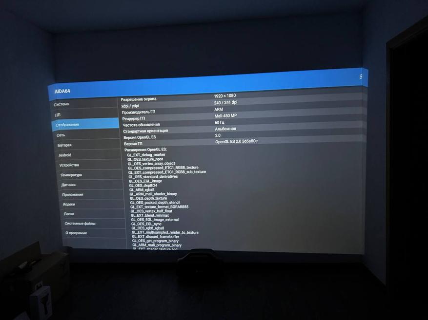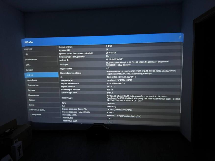 На борту установлен Android 9, для базовых задач проектора его хватает. Накатанный сверху лаунчер стандартный и дружелюбный — все под рукой. Аппаратная начинка скромная: 2 ГБ оперативной памяти и 4-ядерный процессор Cortex-A53. Стандартный лаунчер дополнен магазином приложений, где без регистраций можно установить популярные программы.