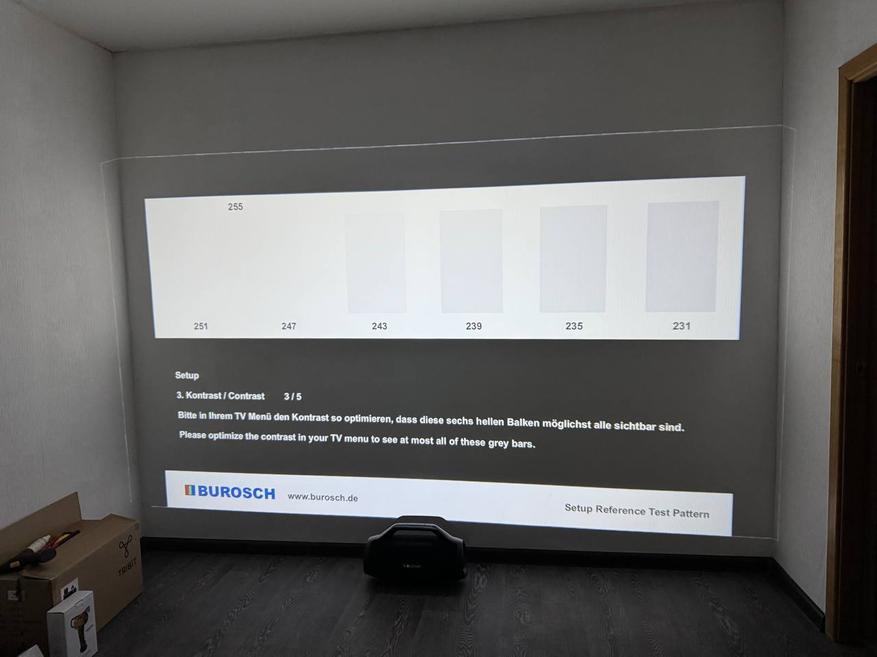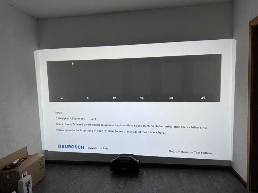 Из интересных особенностей отмечу небольшой размер линзы. Это позволяет размещать устройство всего в 2,5-2,8 метрах от стены для получения изображения размером 3 на 2 метра. Для сравнения: Thuandeal TD-97 Pro для аналогичного результата требуется около 4 метров, TouYinger-у около 3,5.