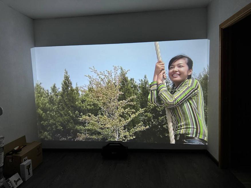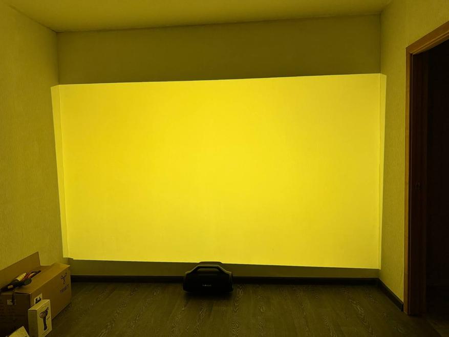 Сразу отмечу, что по яркости проектор не блещет. Модели TouYinger Q12W PRO (обзор) и Everycom HQ10W (обзор) при аналогичной заявленной мощности лампы дают значительно более яркую картинку. В полностью затемнённом помещении показатели у Lenovo ниже чем у конкурентов, а при любом внешнем освещении изображение становится совсем блёклым.