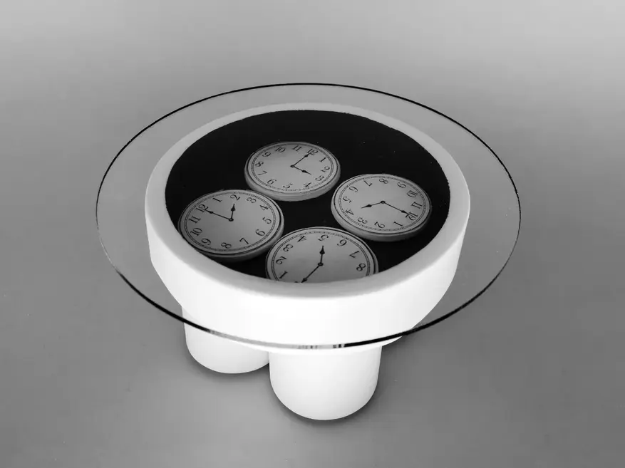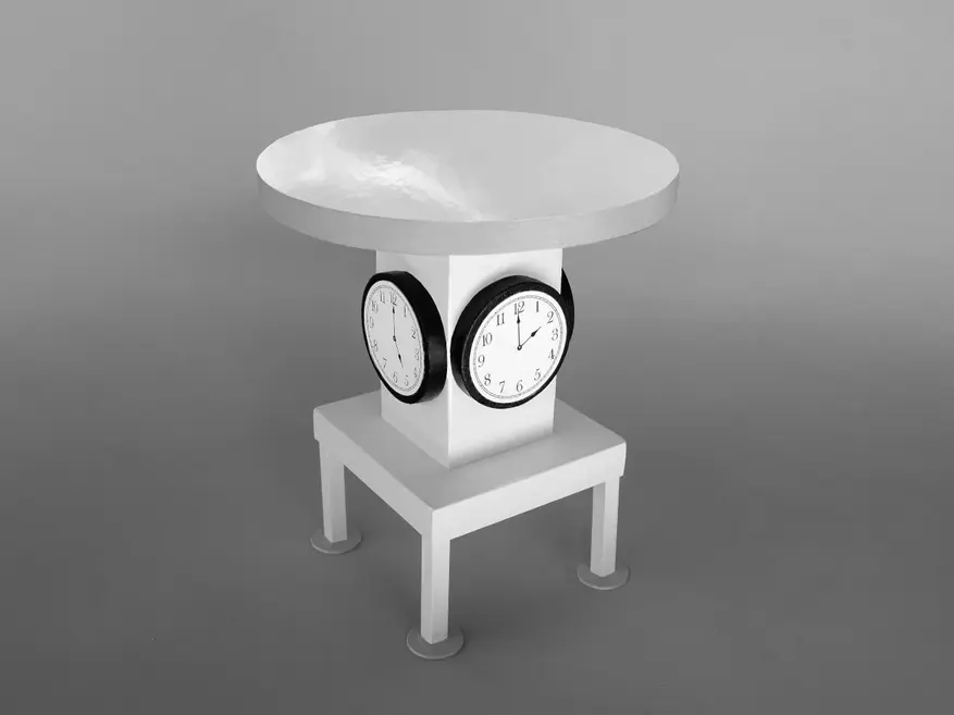 Каждый предмет решает конкретную задачу отображения времени. Столик Local Time оснащён одними центральными часами под стеклянной столешницей — они показывают местное время. Столик «Четыре времени» круглой формы содержит четыре циферблата, настроенных на тихоокеанский, горный, центральный и восточный часовые пояса США. Столик «Временная шкала» воспроизводит те же четыре пояса, но циферблаты расположены в ряд в форме горизонтального прямоугольника, повторяющего географическую конфигурацию США.