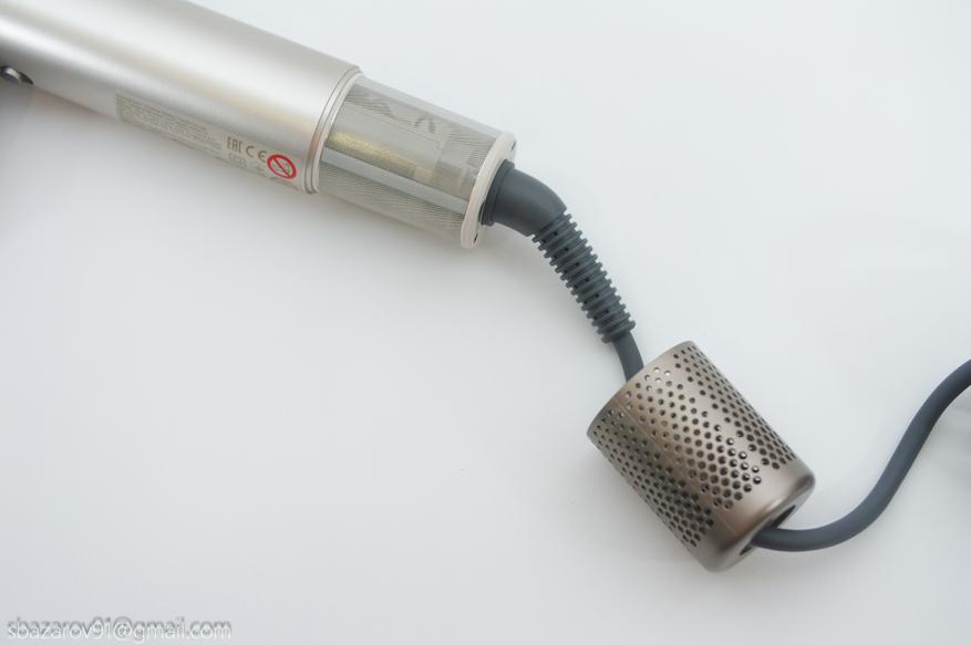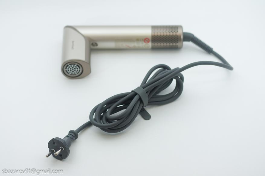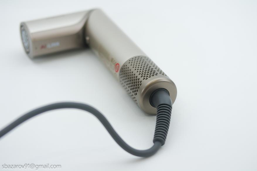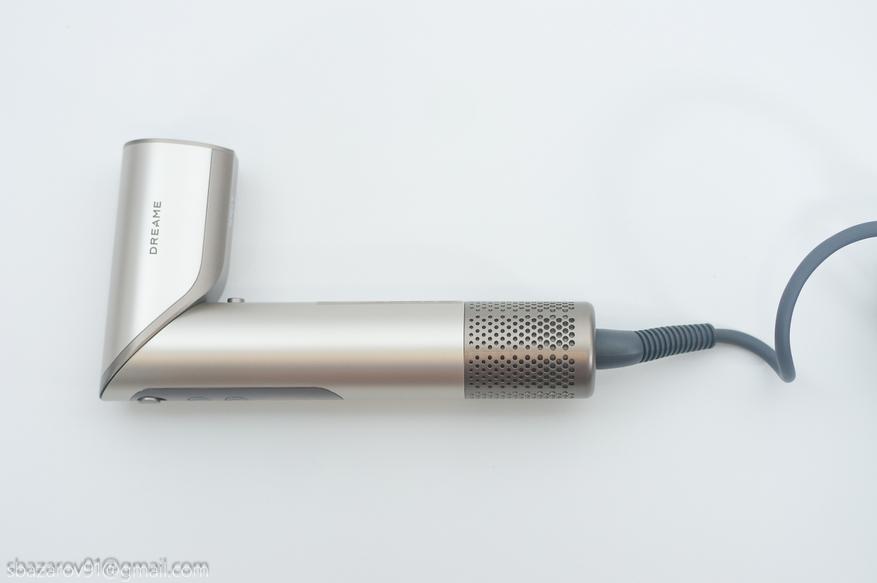 Для комфортного перемещения возле зеркала Dreame Dazzle оснащен шнуром 2,8 метра. Шнур в мягкой оплетке с усиленным входом в корпус. Чуть выше — сеточка забора воздуха на магнитах.