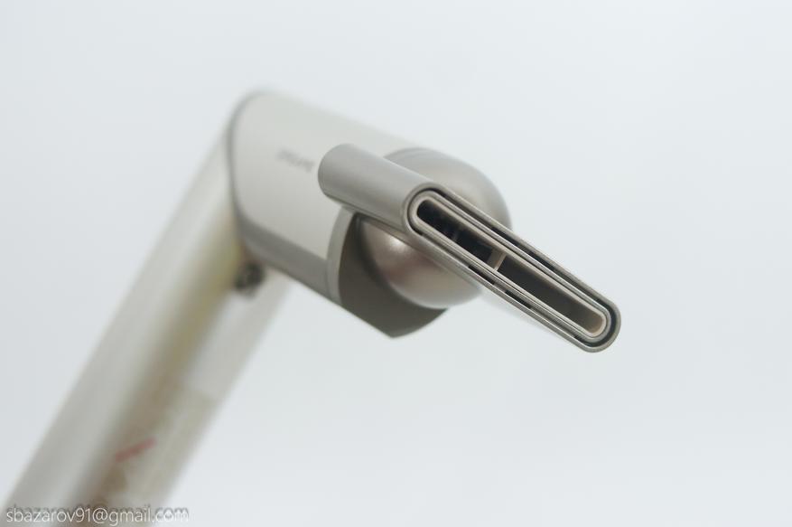 Для реализации поворота верхнего блока была придумана интересная конструкция, в которой центральный воздуховод имеет минимальный изгиб в Г-образном положении. Тем самым Dazzle не теряет в скорости воздушного потока в любом из положений.