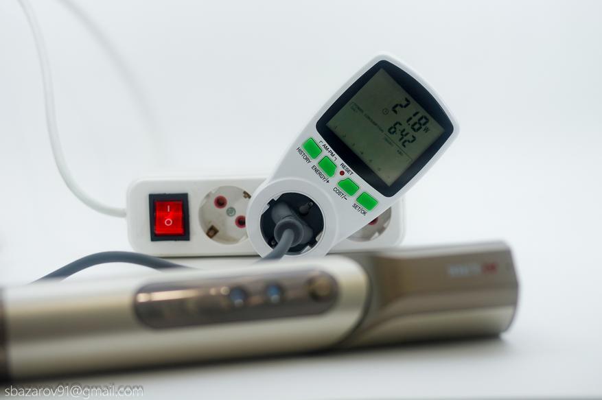 Давайте проверим, сколько мощности устройство действительно потребляет. Измерять этот показатель будем с помощью ваттметра, после чего добавим его в сводную таблицу, чтобы вы могли наглядно сравнить Dazzle с другими мультистайлерами. Несмотря на то, что в названии у него значится «фен», на деле перед нами универсальный фен-мультистайлер, так что это стоит учитывать при сравнении. С появлением высокооборотистых BLDC-двигателей потребляемая мощность перестала быть ключевым критерием оценки фенов и стайлеров. Гораздо важнее стала эффективность устройства, поэтому в следующем разделе мы перейдем к самому главному — тестированию воздушного потока.