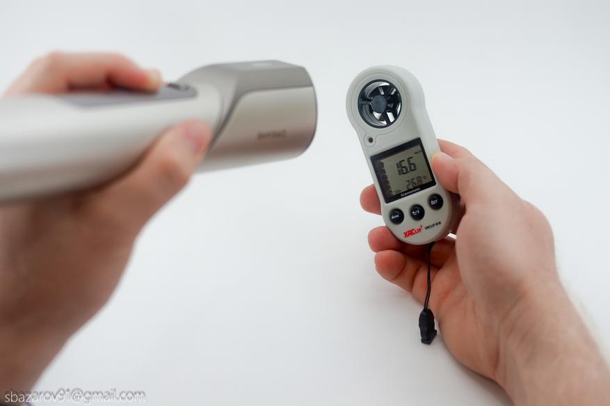 Скорость воздушного потока — ключевой параметр, показывающий, насколько быстро воздух проходит через стайлер. Он напрямую влияет на эффективность сушки и комфорт использования. Измерим этот показатель с помощью анемометра и сравним результаты с другими протестированными мультистайлерами (все замеры приведены к одинаковым условиям):