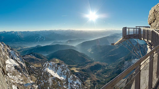 На высоте 2700 метров в австрийских Альпах находится Dachstein Skywalk — смотровая площадка, предлагающая панорамный обзор на 360 градусов. Отсюда можно разглядеть не только альпийские вершины, но и леса Чехии и даже очертания Словении.