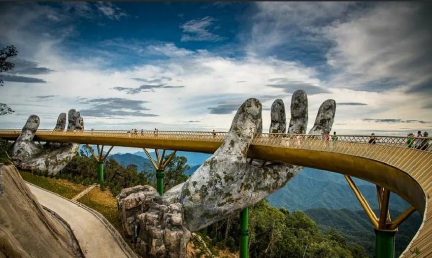 В 2018 году во Вьетнаме появился один из самых необычных мостов в мире — Golden Bridge на горе Ба На Хиллс. Его главная особенность — две гигантские каменные руки, поддерживающие пешеходную дорожку длиной 150 метров. Мост расположен на высоте 1400 метров над уровнем моря и окрашен в ярко-желтый цвет, что делает его заметным издалека.