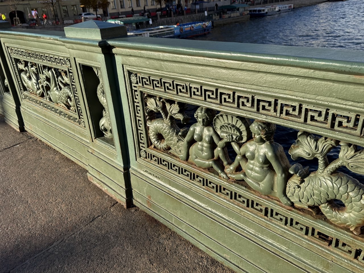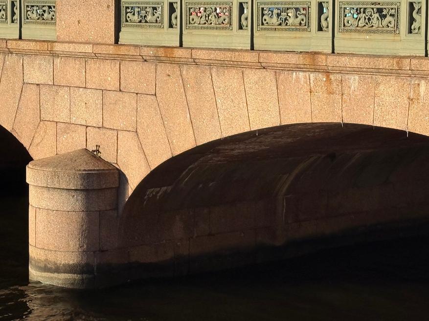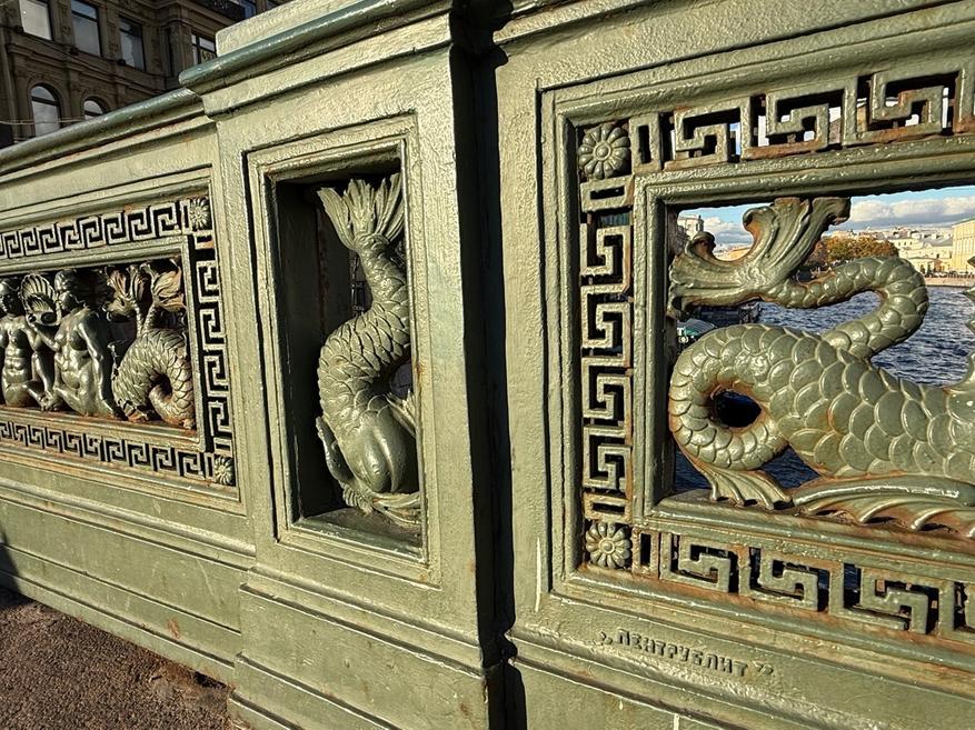 В 1906 году, когда трамвайные пути угрожали целостности чугуна, инженер Белелюбский заменил его стальными балками, сохранив внешний вид. Сегодня в основании моста обнаружены следы всех эпох: деревянные сваи XVIII века, чугунные плиты XIX и стальные конструкции XX века — как слои геологического разреза.