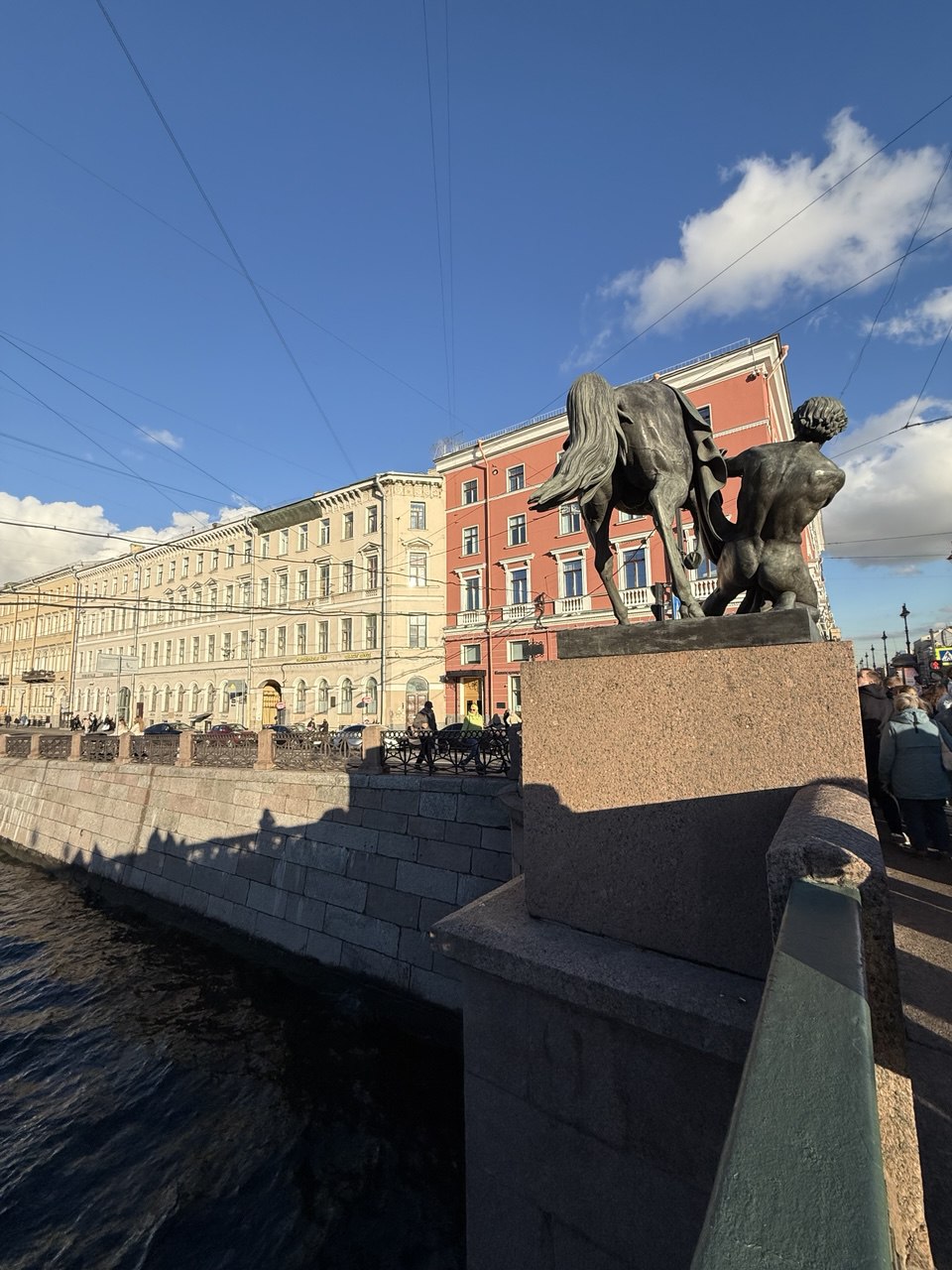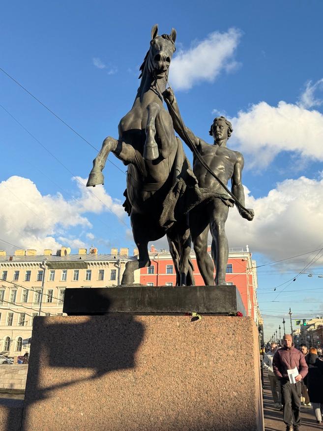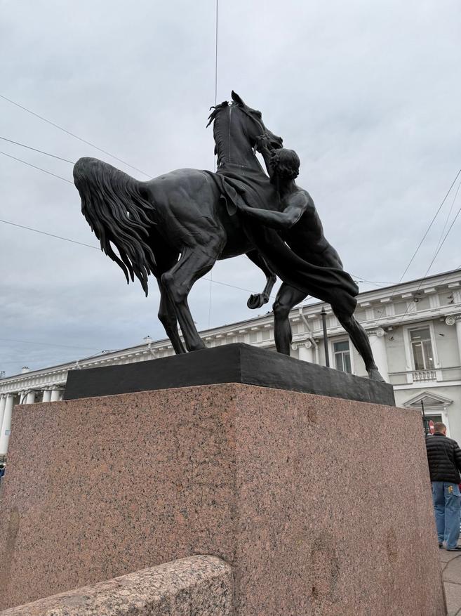 - Ахматова: «У коней Аничкова моста / Копыта битвой времени стёрты».