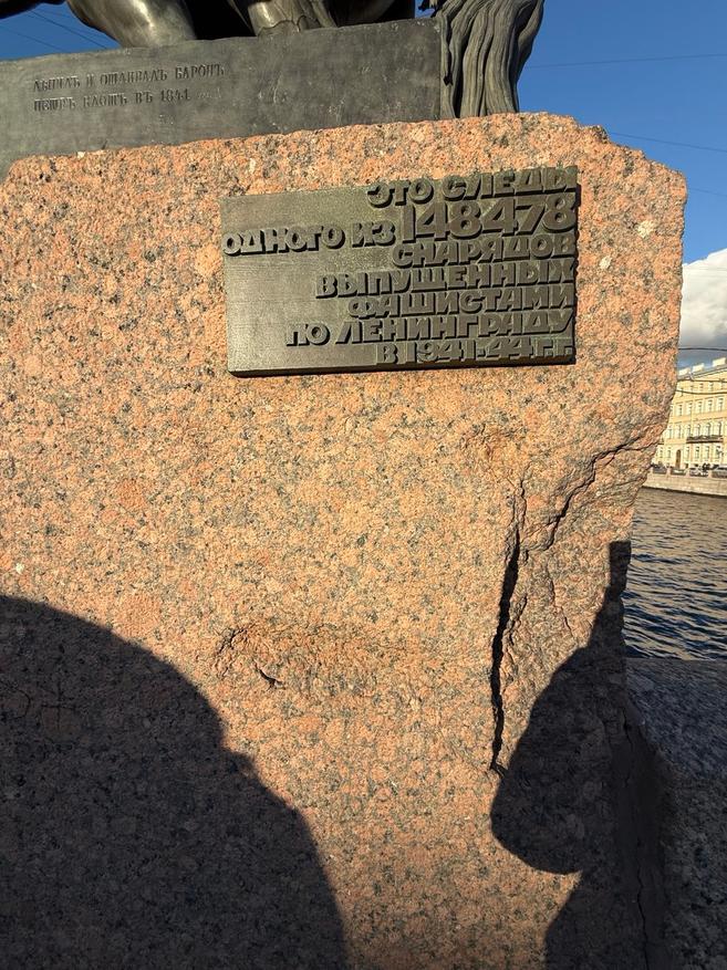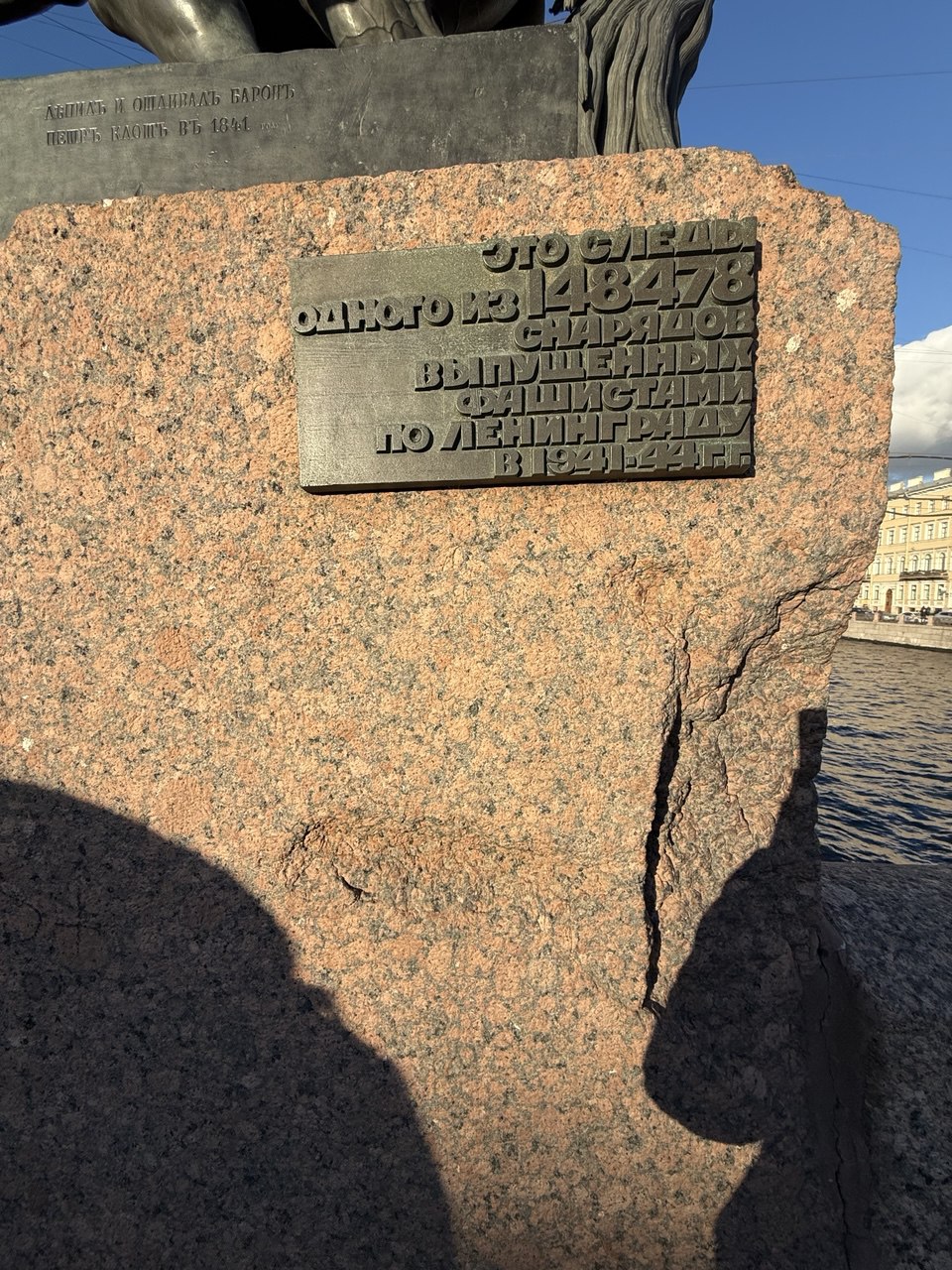 15 января 1942 года осколок авиабомбы всё же нашёл одну из скульптур, оставив вмятину на крупе коня. После войны было решено сохранить это повреждение как память о блокаде.