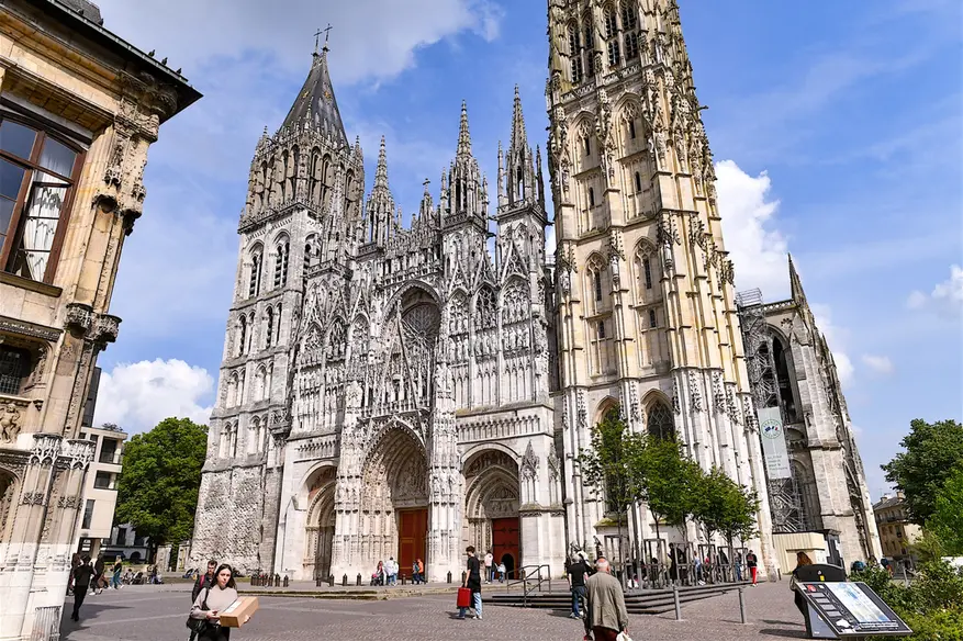 Интересные факты: собор был самым высоким зданием мира в конце XIX века, именно этот собор стал главным героем серии картин Клода Моне, в соборе венчался король Англии Генрих VI, здесь находится знаменитый астрономические часы XIV века.
