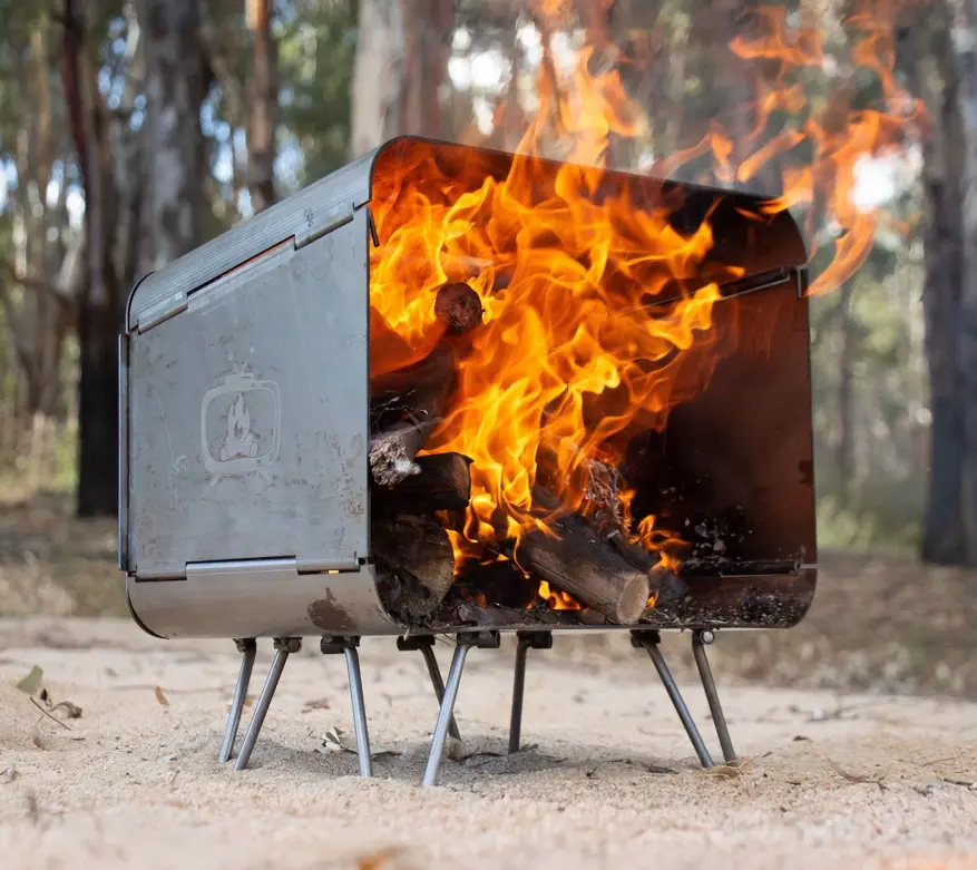 Австралийский промышленный дизайнер Ник представил новую походную печь Bush Telly, которая успешно завершила кампанию на Kickstarter в конце августа 2025 года. Устройство представляет собой портативную костровую чашу из низкоуглеродистой стали с порошковым покрытием, весом 18 кг, которая складывается для транспортировки в специальную сумку.