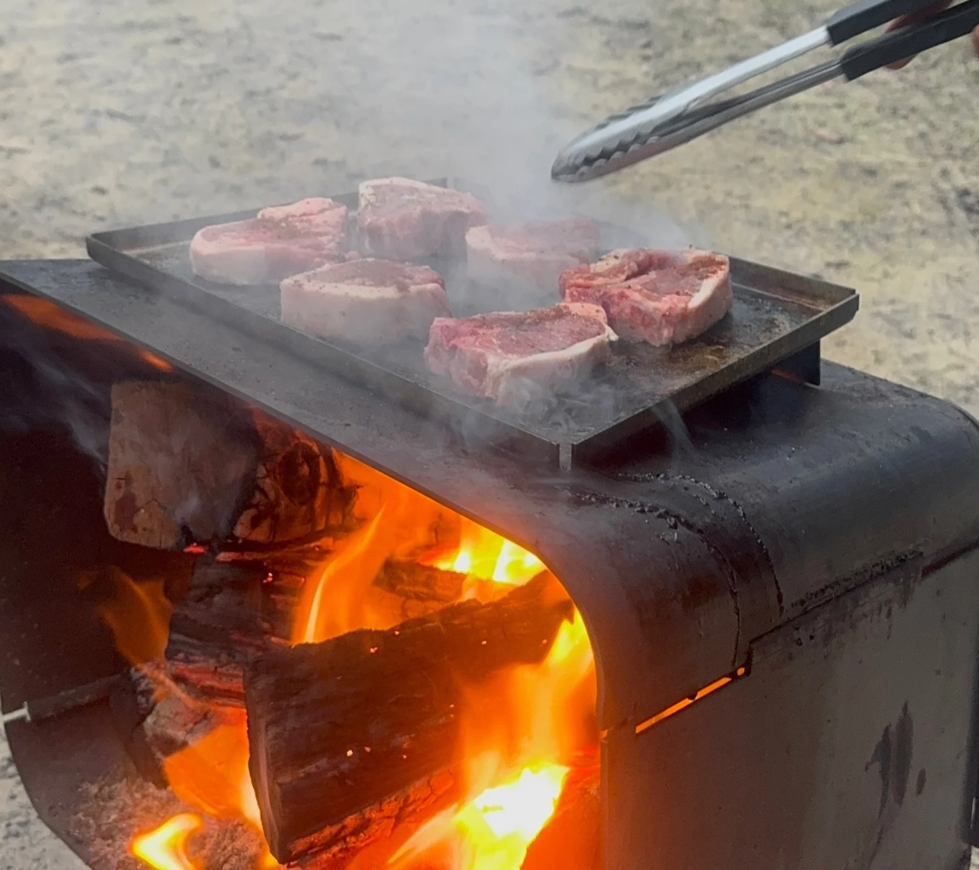 Дополнительно можно приобрести варочную панель из нержавеющей стали размером 41x27 см, которая устанавливается сверху и превращает устройство в функциональную походную плиту, сохраняя при этом возможность наблюдать за пламенем через открытую переднюю часть.