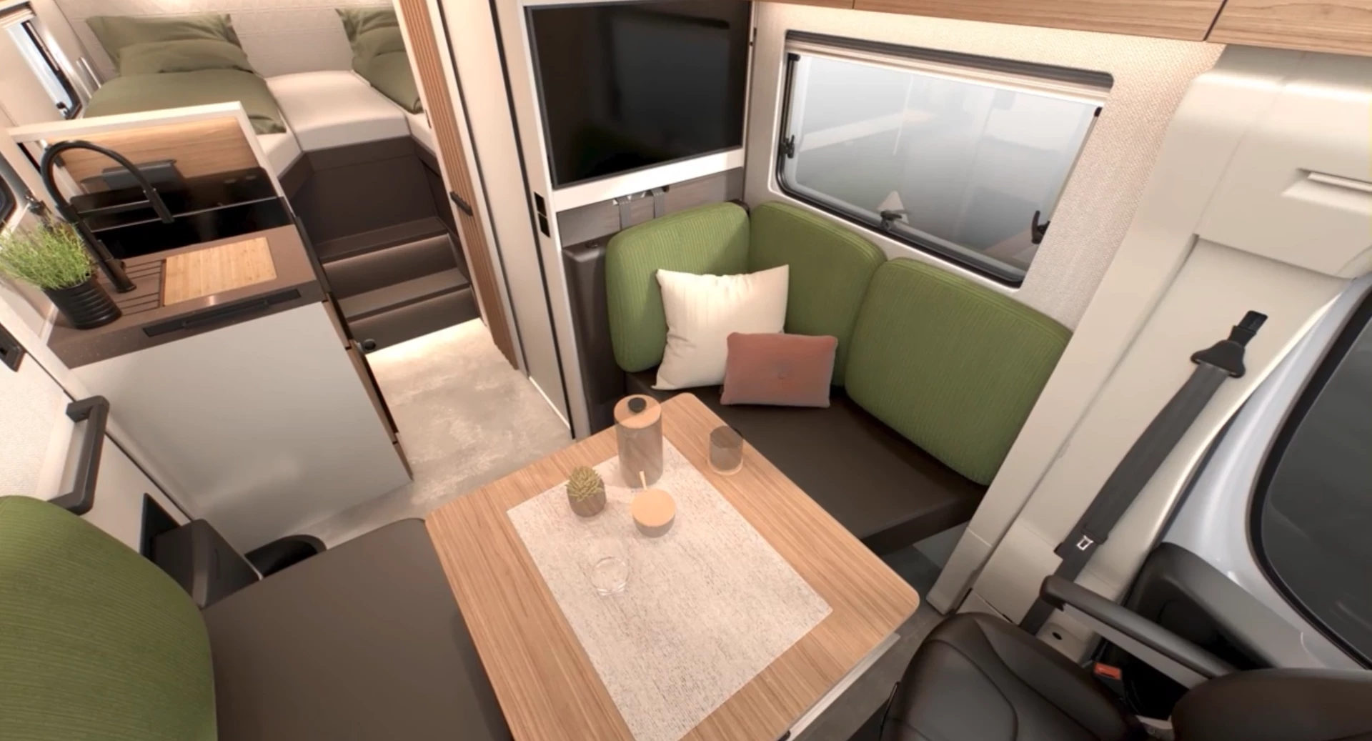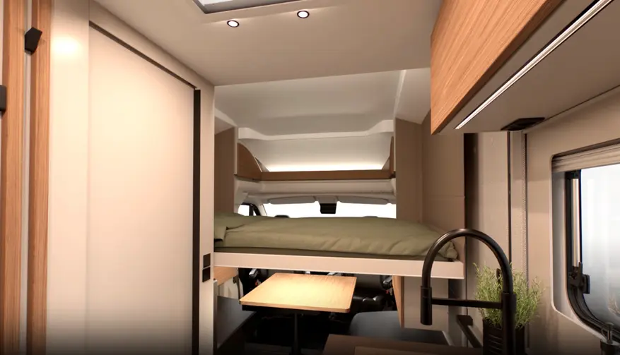 В стандартной комплектации автодом имеет две продольные кровати в задней части (204x73 см и 197x73 см), но покупатели могут выбрать вариант с одной кроватью размера queen-size. Опционально доступна передняя откидная кровать размером 130x193 см, что позволяет увеличить вместимость до четырех спальных мест.