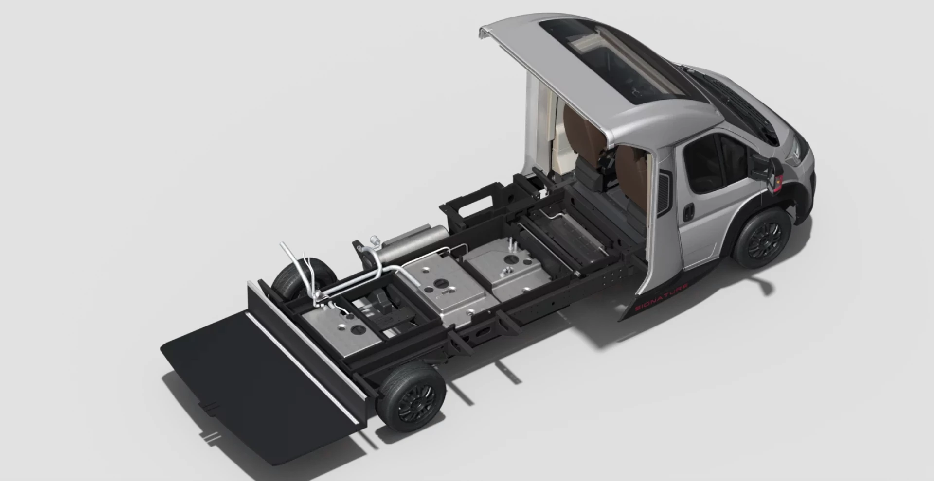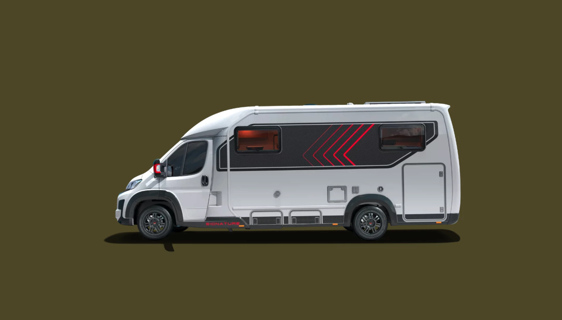 Signature построен на базе Fiat Ducato и имеет длину 717 см. Автодом отличается элегантным дизайном из стекловолокна и инновационными трансформируемыми элементами интерьера. Ключевой особенностью является раздвижная стена в ванной комнате, которая позволяет создать просторную душевую зону, отделенную от туалета и раковины.