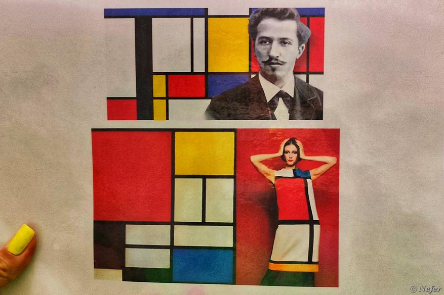 Это одна из композиций Пита Мондриана. Он создавал свои шедевры из простых линий и элементарных форм, запоминающийся стиль. Его творчеством вдохновлялись известные модельеры: Лола Прусак создала линейку чемоданов и сумок со вставками из цветных квадратов кожи, а в 1965 году Ив Сен-Лоран представил знаменитые платья «Мондриан» с характерным принтом.
