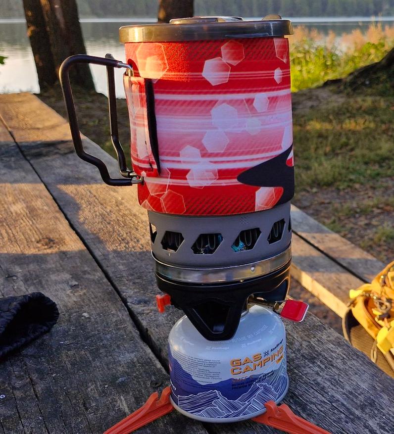 Вскипятить воду можно разными способами, но быстро и удобно с помощью унитарной системы кипячения под газовый баллон. Бывают на разный объем котелка, на разное количество человек. На сплаве на привале/стоянке такие системы позволяют получить кипяток для чая/кофе или перекуса буквально за несколько минут. Плюсы: быстро, устойчиво к ветру, нет копоти, не обжигает руки. Можно готовить не только кипяток, но варить что-то. Потом все складывается в один объем. Минусы: надо потратиться на покупку, следить за газом в баллоне.