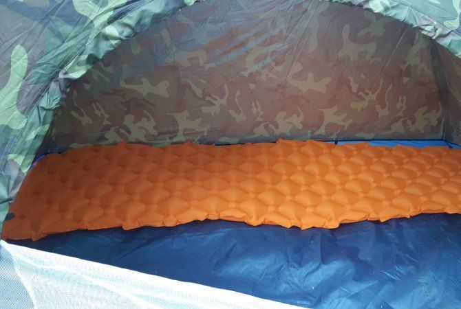 Под спальный мешок нужно что-то подстелить, чтобы убрать неровности поверхности под палаткой и сделать изоляцию от земли, и не замерзнуть ночью. Туристам сильно полюбились коврики из вспененного материала («пенка»). Но в лодке (особенно одноместной) они занимают много места, хоть и весят совсем немного. А вот мне для сплавов с ночевкой пришелся к месту именно надувной коврик. Не самонадувающийся (с поролоном внутри), а именно надувной от насоса из синтетической ткани. Он в сложенном состоянии занимается объем полулитровой бутылки и весит грамм 400. Там обычно простой клапан низкого давления (например, бостон) и его надуть можно от насоса лодки (или еще докупить переходник если у вас насос высокого давления). А по комфорту он сильно лучше пенки, толще и дает лучшую изоляцию от земли.