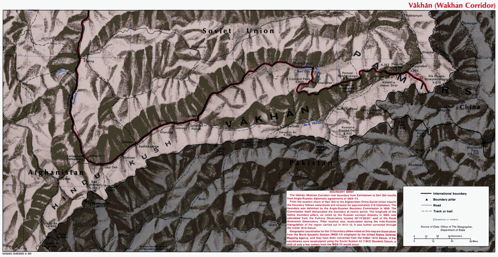 Сегодня этот узкий участок Афганистана, простирается между Таджикистаном на севере и Пакистаном на юге, достигая границы с Китаем на востоке (но там короткая граница всего 76 км по прямой). Это суровый высокогорный регион (перевалы с высотой до 5000 м) между хребтами Гиндукуша и Памира. Население небольшое, чуть больше 10 тыс. человек.