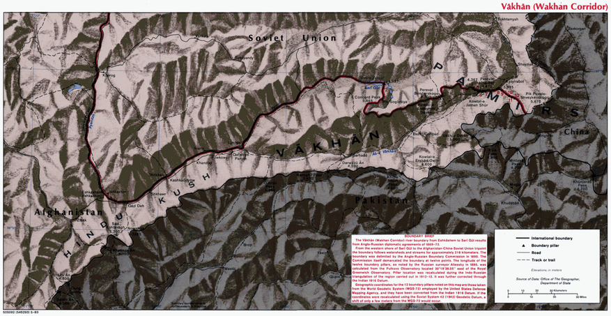 Глядя на политическую карту мира, у многих стран замечаешь странные геометрические «узоры» линии границы, не всегда они определяются географическими особенностями местности. Есть свой необычный «выступ» границы на востоке Афганистана, это длинная (до 300 км), но узкая (15-60 км) полоска в долинах рек Памир и Пяндж ( провинция Бадахшан). Этот регион (в котором ничего особенного кроме высоких гор и нет) исторически играл ключевую роль в геополитике Центральной Азии и стал результатом сложных международных договорённостей. Он появился в конце XIX века и назван — «Ваханский коридор» (по названию района Вахан). Какова история его появления и значение сегодня? — Давайте разбираться.