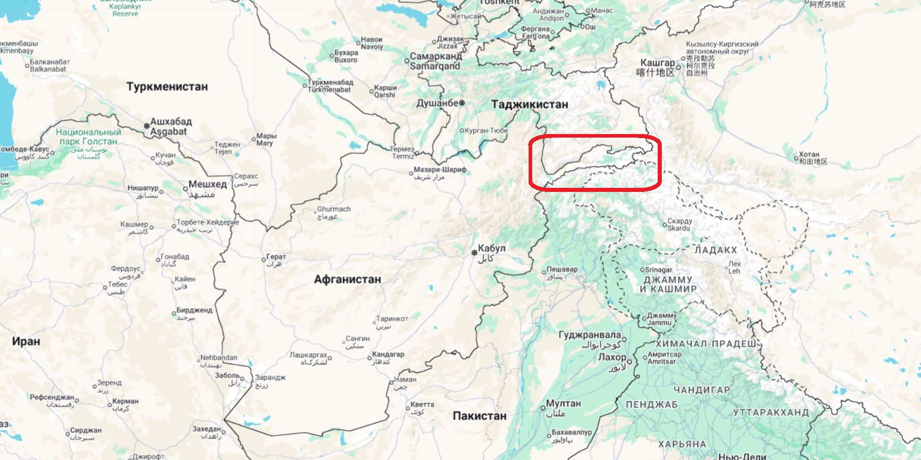 Что за странный выступ на территории Афганистана на востоке