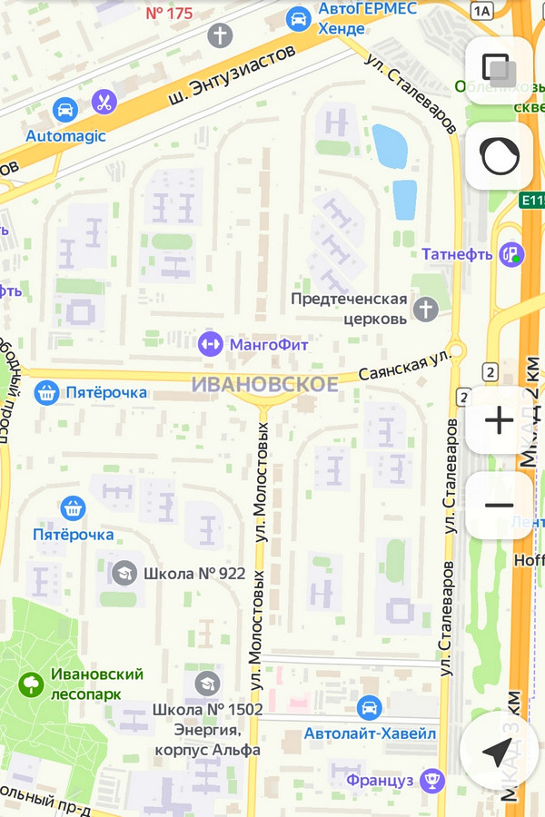 - шоссе Энтузиастов, 100 корпуса 5-7 + Саянская улица, 15 корпус 3