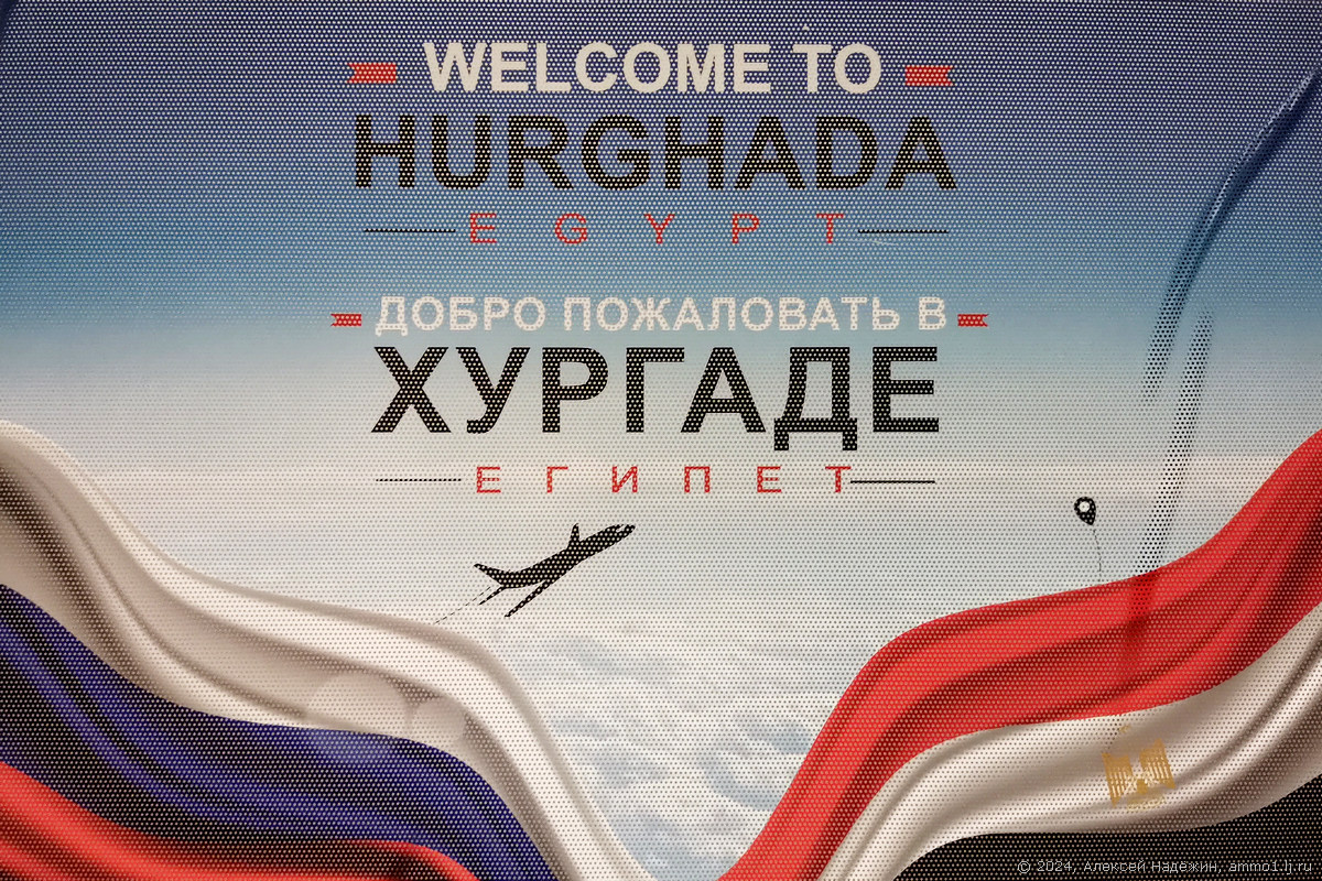 Всех прилетающих в аэропорт Хургады встречают плакаты. Русская надпись разумеется с ошибкой.)