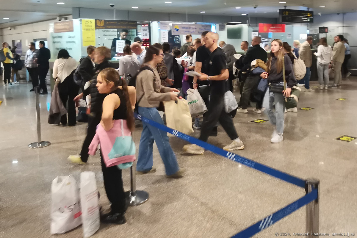 21.11.2024 в Москве новые доллары можно было купить по курсу 100.5 руб (оказалось, что самый выгодный способ покупки долларов в Москве сейчас, неожиданно, в пунктах переводов денег Юнистрим). Банкомат в аэропорту Хургады меняет доллары на фунты по курсу 49.65. Таким образом, 10050 руб превращаются в $100, а потом в 4965 фунтов, соответственно курс обмена рублей на фунты получается 2.02 руб за фунт. У менял в этот момент курс был около 2.1 руб за фунт.