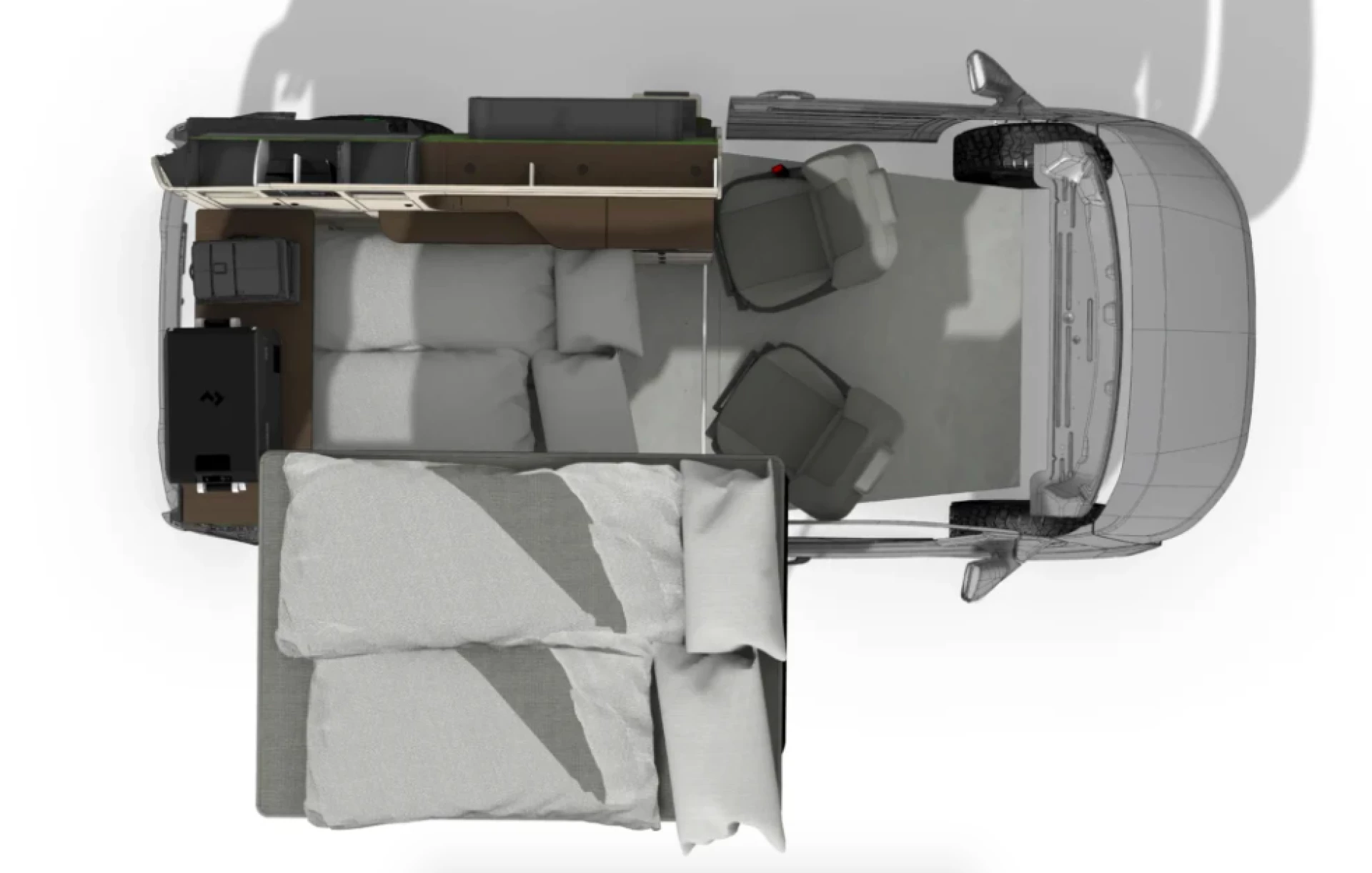 Электрическая система включает в себя литиевую батарею ёмкостью 300 ампер-часов, инвертор мощностью 3000 ватт и солнечные панели мощностью 340 ватт. Резервуар для воды вмещает 25 литров. В комплект входят дизельный обогреватель и портативный биотуалет.