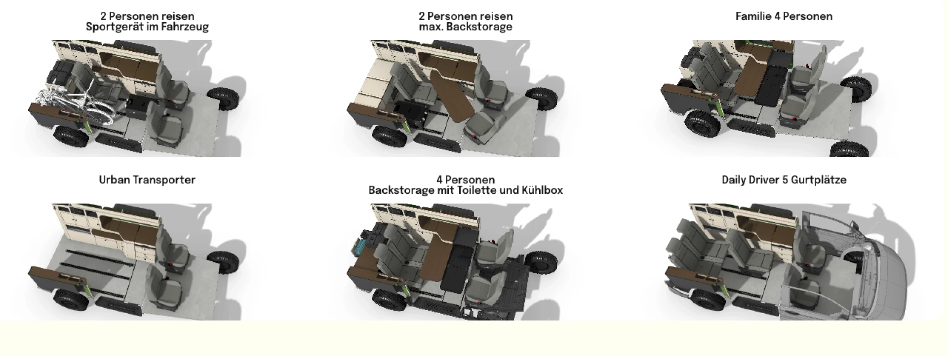Конструкция крыши отличается от традиционных решений: она откидывается в сторону водителя, а не поднимается вверх. Внутренняя надувная палатка разворачивается за семь минут с помощью встроенного воздушного компрессора. Система оснащена несколькими клапанами, которые позволяют быстро спускать воздух и предотвращают полное обрушение конструкции при повреждении одного из сегментов.