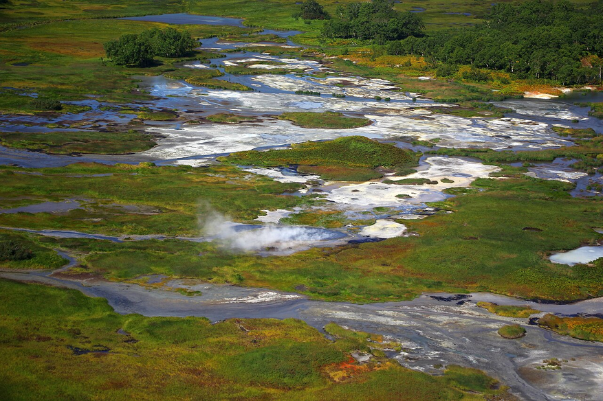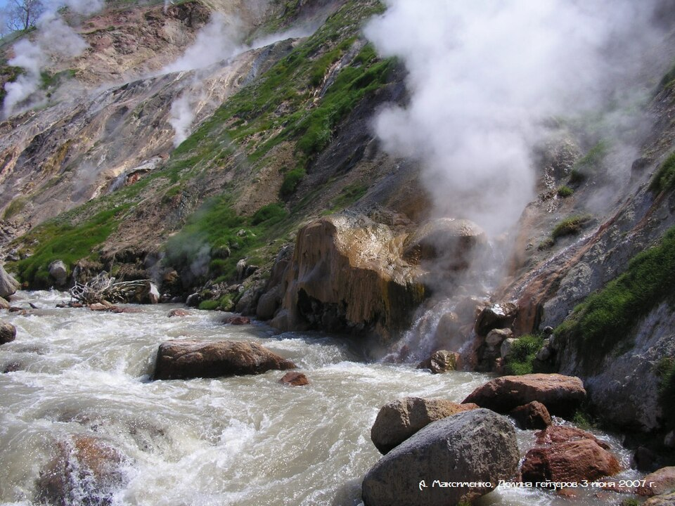 Долина гейзеров по праву считается одним из самых зрелищных мест всей Камчатки. Вздымающиеся в воздух фонтаны горячей воды, клубящийся повсюду пар. А весной здесь раньше всего появляется растительность из-за прогретой земли.