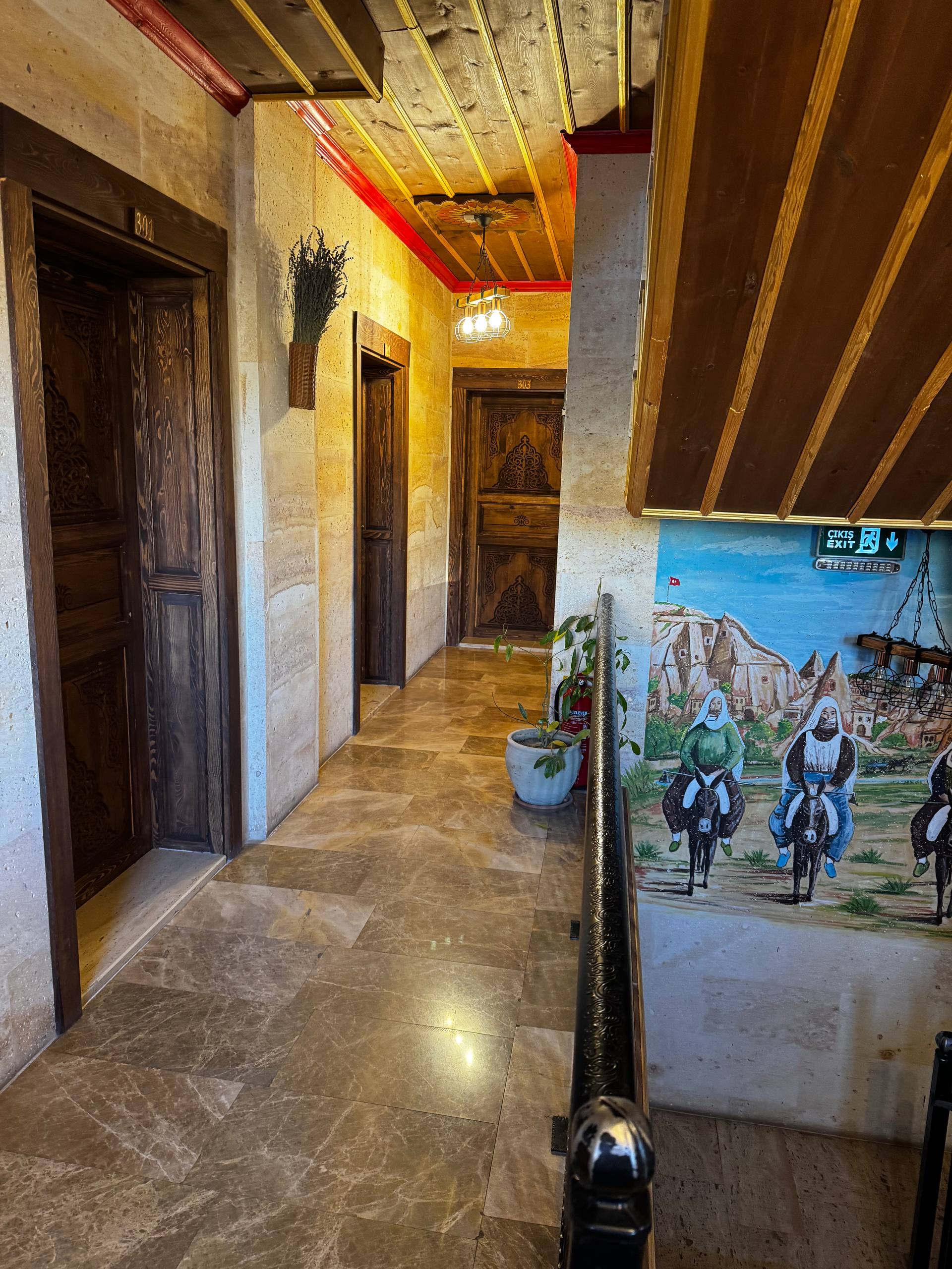 Если ехать на машине, подъезд тоже без проблем: к самому входу можно подъехать напрямую, рядом есть парковка. Чемоданы не приходится тащить по длинным лестницам или узким каменным улочкам, что в Гёреме, кстати, встречается часто.
