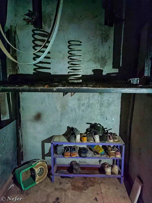 В подвале два ответвления: вперед и вправо. Путь к одной из квартир лежит мимо шахты лифта. Все по-простому, наверху ездит лифт, а под ним стоят ботинки. Причем лифт в египетских домах запускается с помощью карточки жильца. Оплатил сервис - ездишь на лифте, не оплатил - ходишь пешком. С этой точки зрения первый и второй этажи в выигрыше.