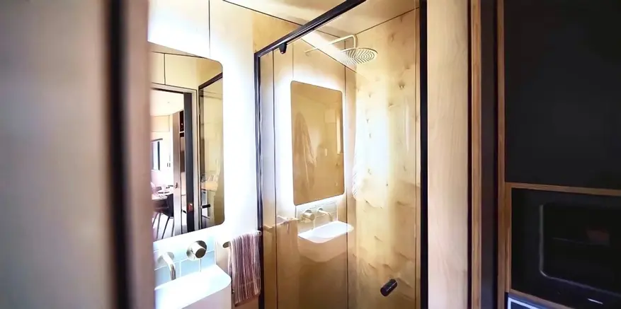 Компания Häuslein выпустила новую модель мобильного дома Luna, построенного на трехосном прицепе длиной 8,2 метра. Особенностью конструкции стала выдвижная секция, которая значительно увеличивает жилое пространство. Дом предназначен для комфортного проживания двух человек и отличается одноуровневой планировкой, что позволяет стоять в полный рост во всех помещениях.