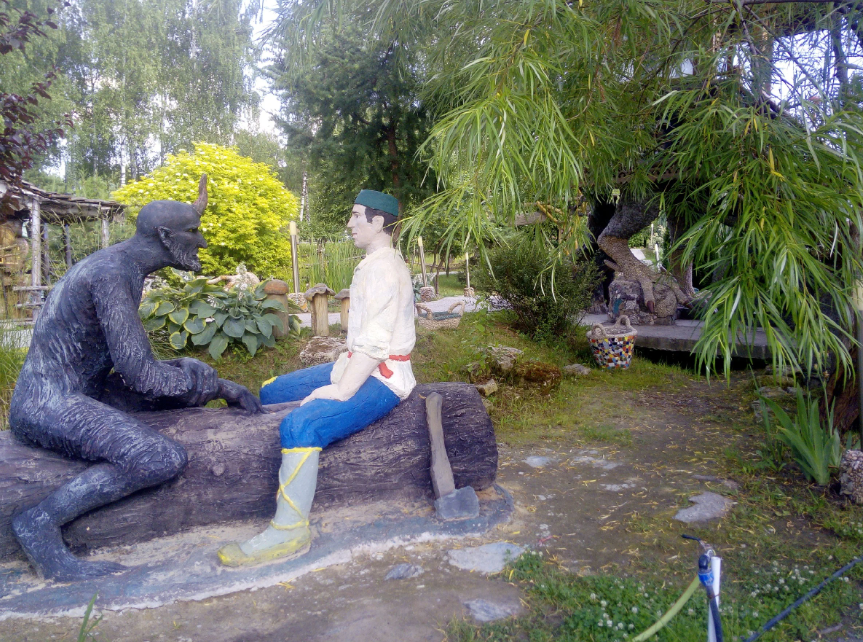 Главная достопримечательность парка - его бетонные и деревянные скульптуры героев русских сказок и пословиц. Всего на территории "детской мечты" находятся более пяти тысяч скульптур, каждая со своей историей. Здесь можно сфотографироваться с любимыми персонажами (чебурашка, винни-пух, баба яга, маша и медведь и другие), посетить музей древнерусского была, прогуляться по алее крокодилов, перекусить в замке и посмотреть на коллекцию обуви со всего мира.