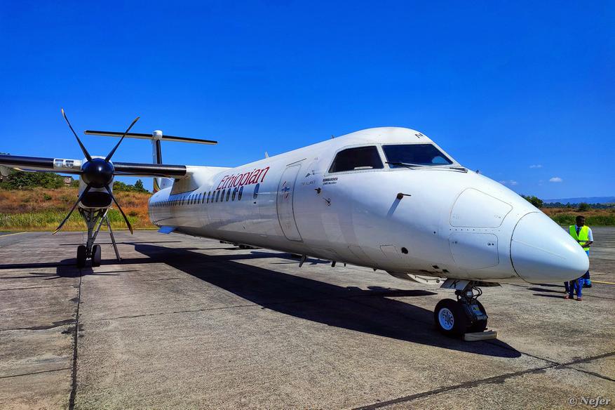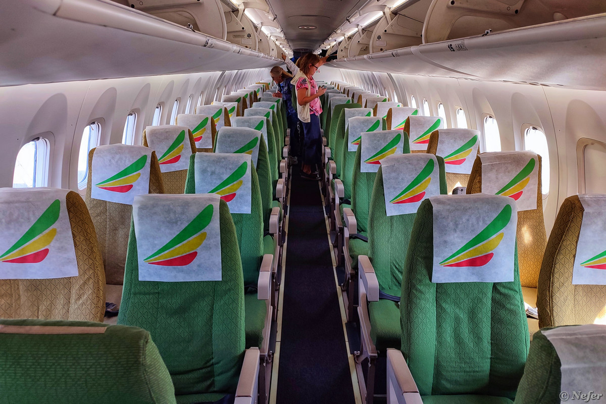 Местные перелеты совершаются на маленьких самолетиках Bombardier. Есть один момент: если вы прилетели в Эфиопию рейсом авиакомпании Ethiopian Airlines, билеты на внутренние рейсы обойдутся вам ВПОЛОВИНУ ДЕШЕВЛЕ. У нас было четыре сегмента, вместо 440 USD мы заплатили 220 USD.