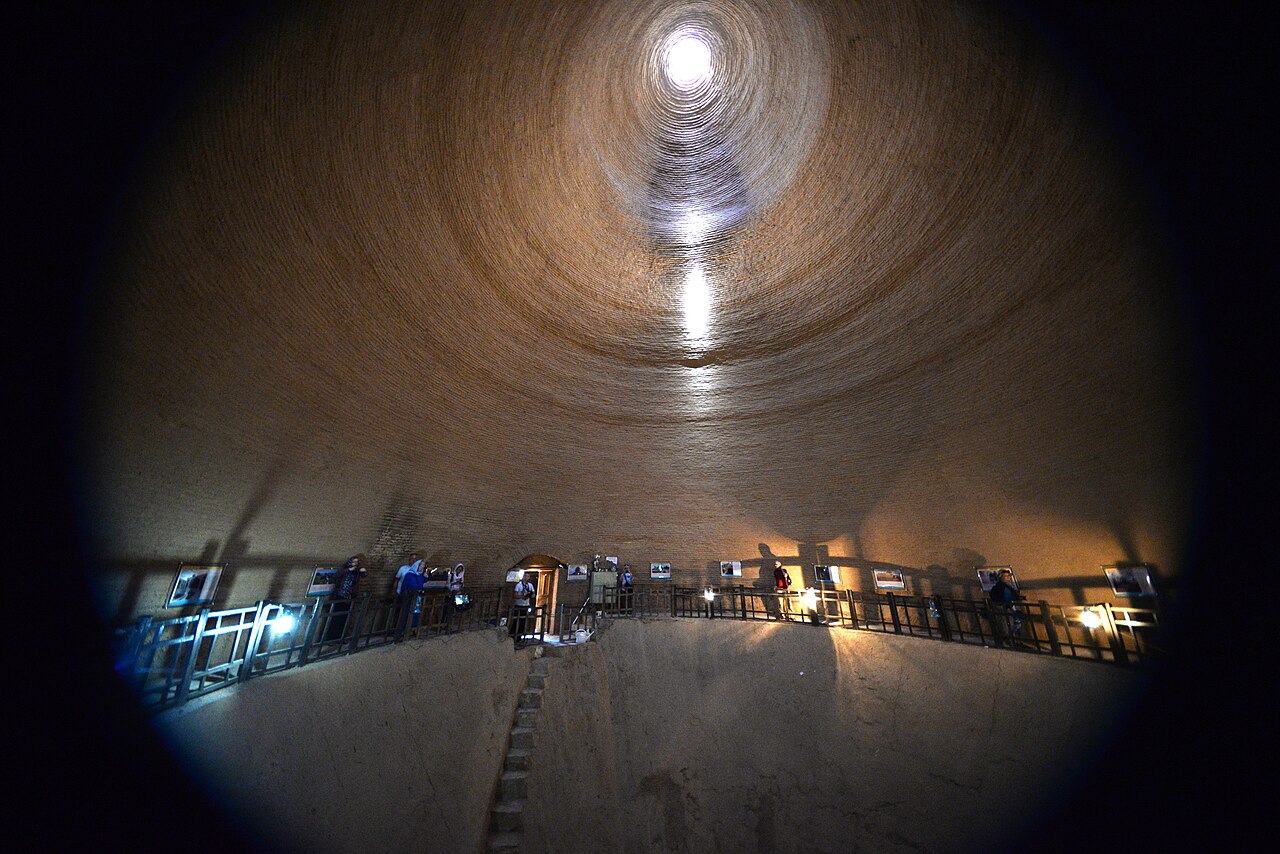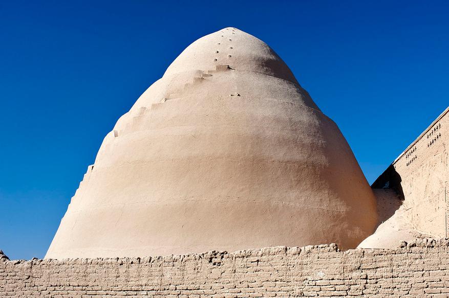 Конструкция яхчала кажется одновременно простой и гениальной. В центре комплекса находился огромный подземный резервуар — глубокая яма объёмом в сотни, а иногда и тысячи кубометров. Именно туда укладывали лёд. Над ней возвышалась массивная куполообразная башня высотой до 15-20 метров, часто конической или слегка вытянутой формы. Форма перевернутого конуса не случайна. Она минимизирует площадь, нагреваемую солнцем, а горячий воздух внутри естественным образом поднимается вверх и выходит через небольшое отверстие в вершине — работает эффект солнечной трубы. Благодаря этому в нижней части, где хранился лёд, температура оставалась заметно ниже.