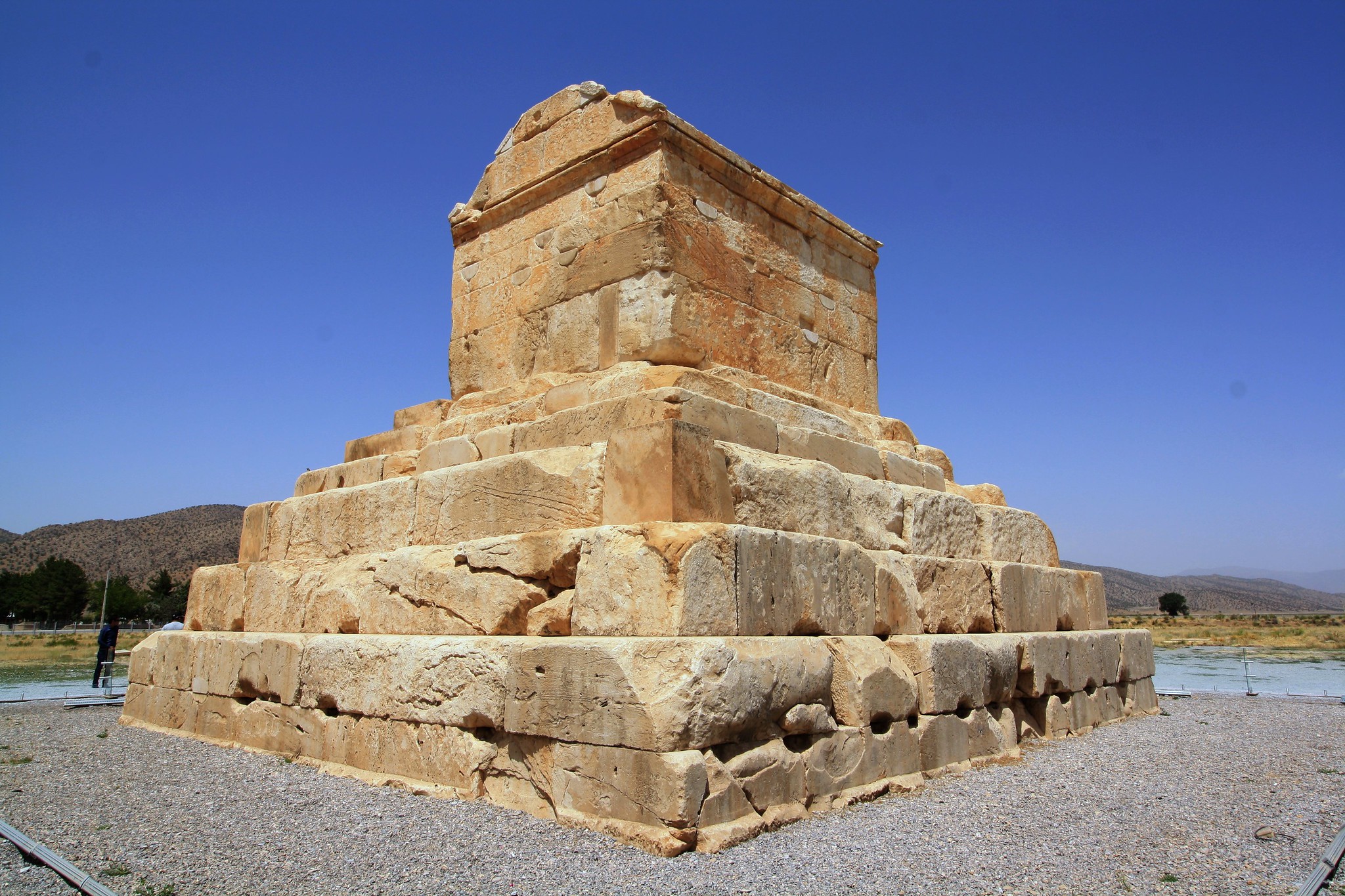 Гробница расположена в Пасаргады — бывшей столице империи Ахеменидов, основанной самим Киром II. Внешне сооружение кажется достаточно скромным для усыпальницы великого правителя, чья империя простиралась от берегов Средиземного моря до реки Инд. Конструкция представляет собой шестиступенчатую пирамиду высотой 11.1 метров, на вершине которой установлена погребальная камера размером 3.16 на 2.18 метра с двускатной крышей.