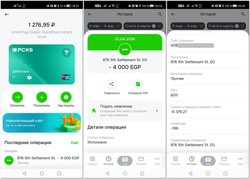 2.4.2026 я снял 4000 фунтов в банкомате банка CIB. Сразу же списались 6379.27 руб и комиссия 199 р.
